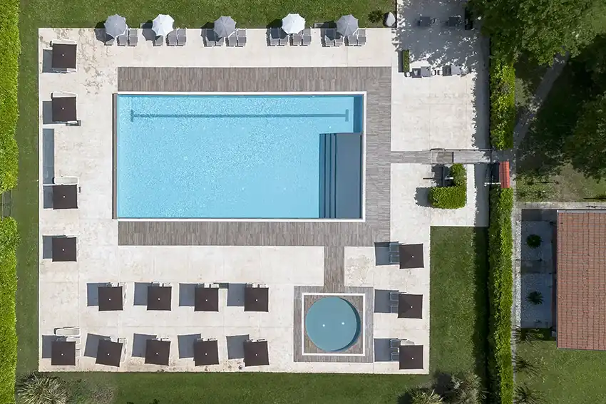 Ein zentral gelegener Pool steht allen Gästen zur Verfügung und ist schnell von allen Einheiten erreichbar.