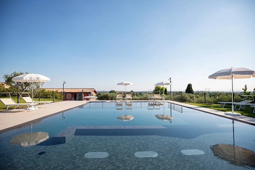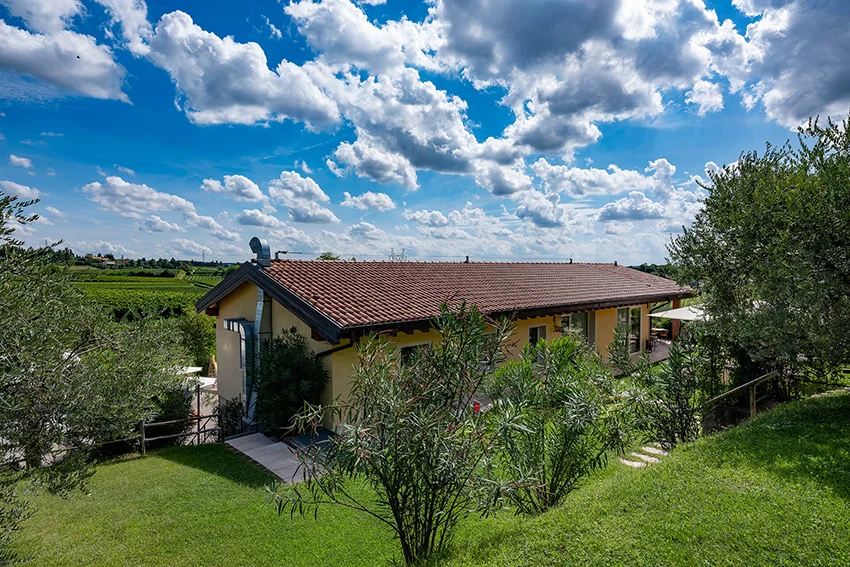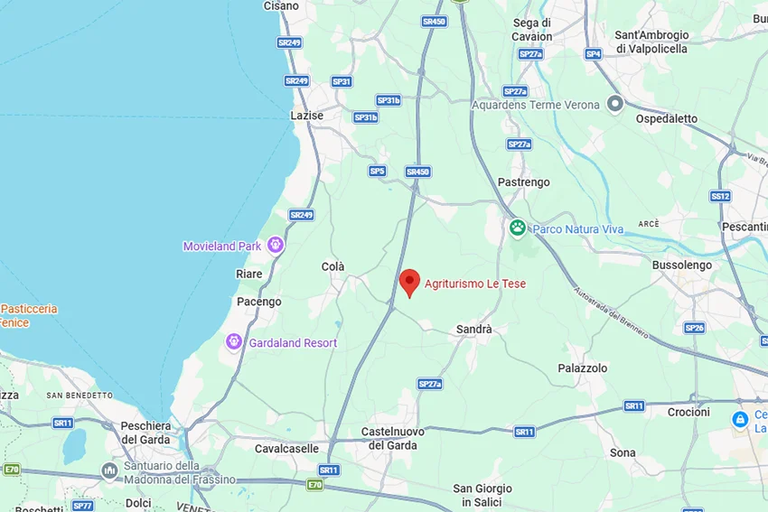 Agriturismo Le Tese liegt im Hinterland von → Lazise in ländlicher Umgebung. Die Anlage ist klein und familiengeführt und bietet deutlich mehr Ruhe und Platz als klassische Hotels oder große Ferienanlagen am Gardasee.