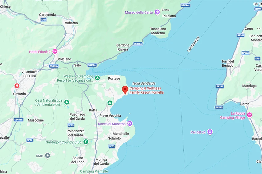 Camping Fornella liegt in San Felice del Benaco am Westufer des Gardasees.