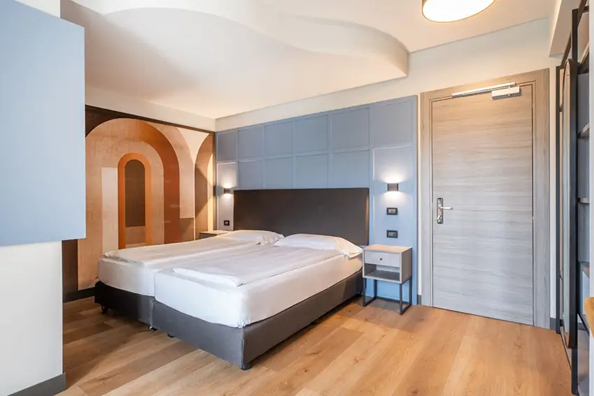Neben klassischen Zimmern gibt es Family Rooms und Zimmer mit Verbindungstür. Das ist praktischer als Beistelllösungen mit Baby.