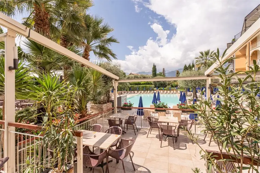 Ruhigeres Hotel in Garda mit klarer Struktur und weniger Trubel. Im Vergleich zum Majestic Palace weniger weitläufig, dafür übersichtlicher.