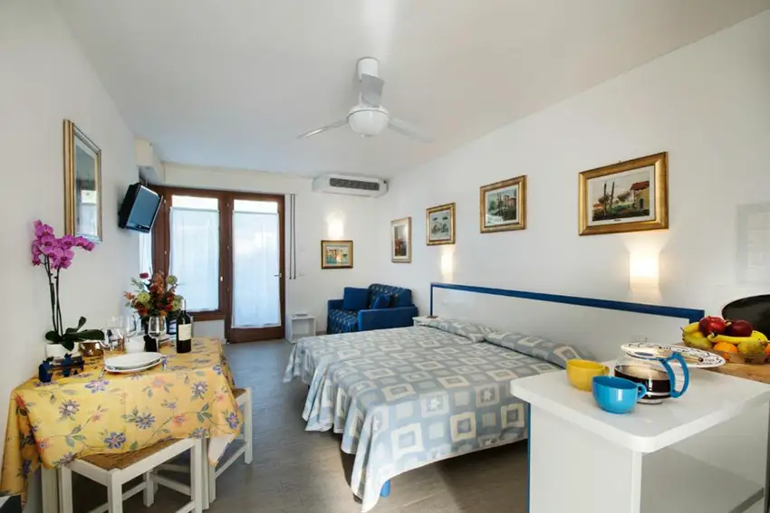 Die Residence besteht aus 38 Apartments, verteilt auf drei Gebäude. Es gibt Einheiten für 1–3, 2–4 und 4–6 Personen – damit ist die Anlage klein genug, um überschaubar zu bleiben, aber nicht nur eine Mini-Unterkunft.